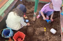 Дети знакомятся со свойствами песка (сухой, мокрый), постигают приёмы строительства из него. Действия с песком развивают мелкую моторику, ручную умелость. Создание и обыгрывание построек обеспечивает развитие детского творчества. Манипулятивные действия с песком вызывают у ребёнка чувство комфорта, удовольствия, радости, что благоприятно сказывается на работе всех функций и систем организма.