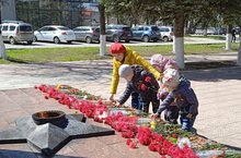 Накануне 77-летия Великой Победы советского народа над фашистской Германией для детей старшей речевой группы провели экскурсию к вечному огню. Дети возложили цветы к памятнику и почтили память погибших минутой молчания.