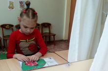 В детском саду продолжает функционировать кружок "Волшебство в песочнице". Благодаря играм с песком у детей развивается тактильно-кинетическая чувствительность и мелкая моторика рук; снимается мышечная напряжённость; развивается мотивация речевого общения; пополняется словарь; формируется связная речь. Сегодня "злой колдун похитил песок из песочных часов. Без них попасть в песочную страну невозможно. Что же делать? Необходимо вернуть песок в песочные часы!" Ребята с удовольствием и большим увлечением заполняли часы цветным песком!