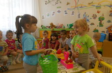 Воспитатель Хабибуллина В.В. с детьми 1 младшей группы провела сюжетно-ролевую игру "Магазин", которая проводилась в рамках Дня работника торговли. Ребята через игру познакомились с этой интересной профессией, закрепили знания о продуктах питания, повторили счет и цвет. Малышам очень понравилось быть покупателями и продавцами, проявив свои коммуникативные качества.