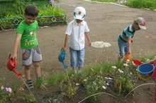 Ребята старшей и средней группы любят ухаживать за своими клумбами. Вместе со своей воспитательницей Зариповой Н.М. они пропалывают и поливают клумбы. За их старание клумбы радуют их красивыми цветочками.