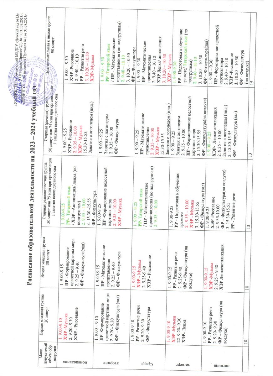 Расписание образовательной деятельности на 2023-2024 уч.год