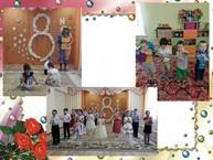 В каждой возрастной группе ко дню 8 Марта были проведены детские утренники с целью воспитания доброжелательного отношения и любви к близким людям, раскрытие творческих способностей детей через различные виды музыкальной деятельности, развитие положительных эмоций.Не прошел праздник и мимо самых маленьких ребят – первой младшей группы. Ребята показывали, как они умеют помогать маме дома: стирают и развешивают белье, накрывают на стол и много-многое другое. А самое главное они приготовили поздравительные открытки для своих мам, сделанные своими руками.