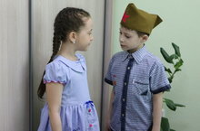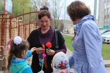 Знаменитая акция «Помним и гордимся» прошла сегодня в детском саду. Воспитанники старшей и подготовительной к школе группы поздравляли пожилых прохожих и раздали георгиевские ленточки, символизирующие память о подвиге советских солдат.