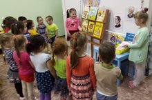 Дети подготовительной группы устроили для детей младших групп обзор книг детских писателей. Для маленьких любителей книг они приготовили иллюстрированную викторину.