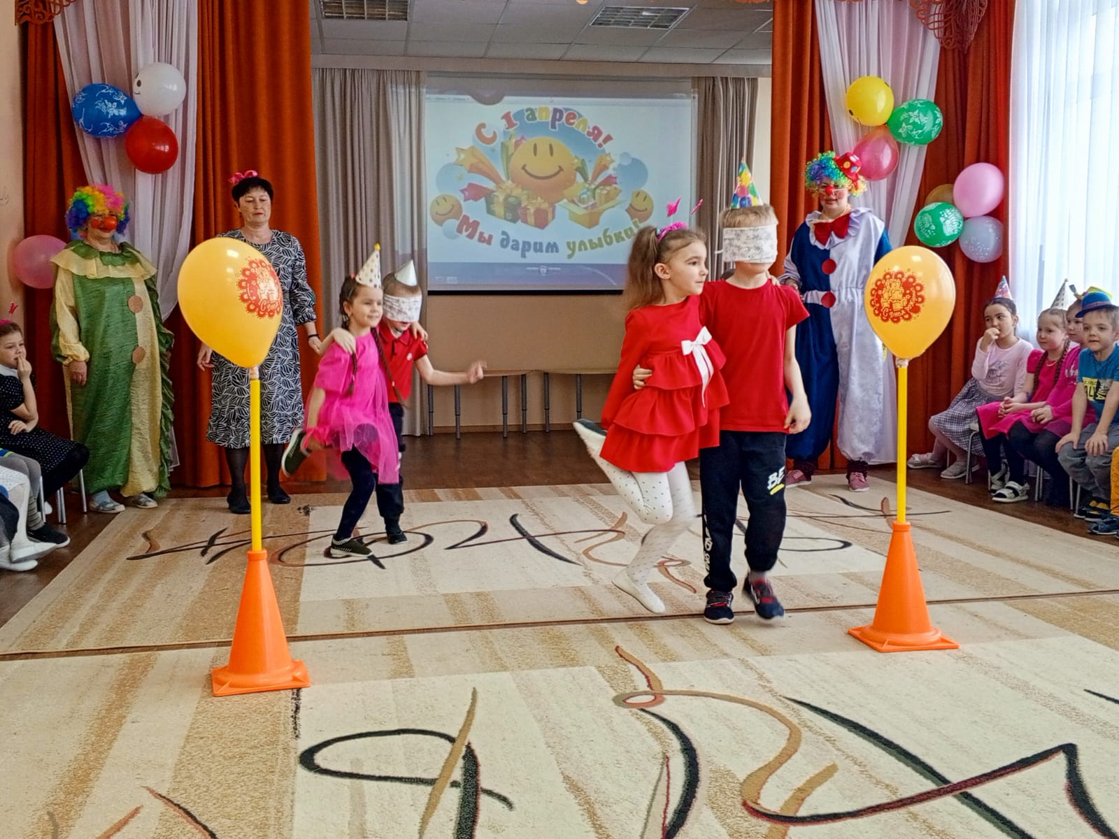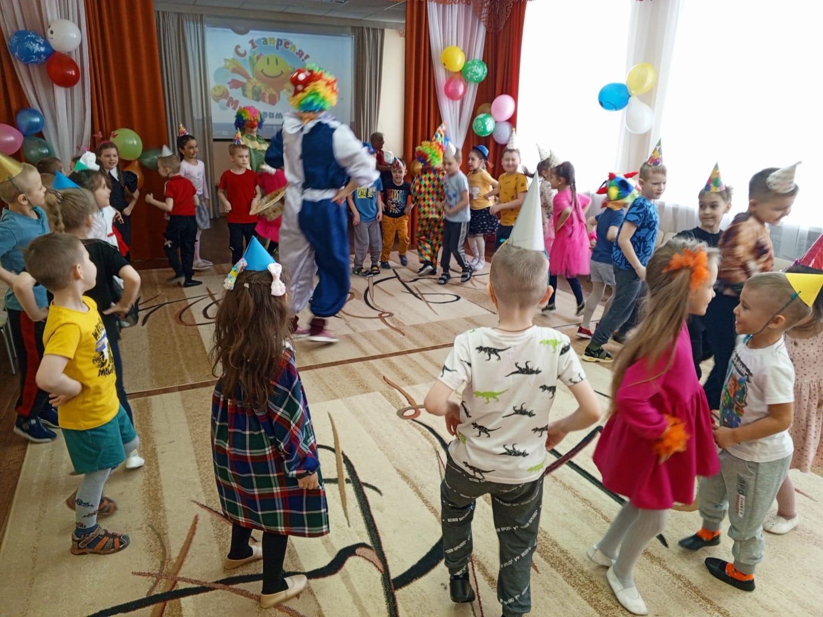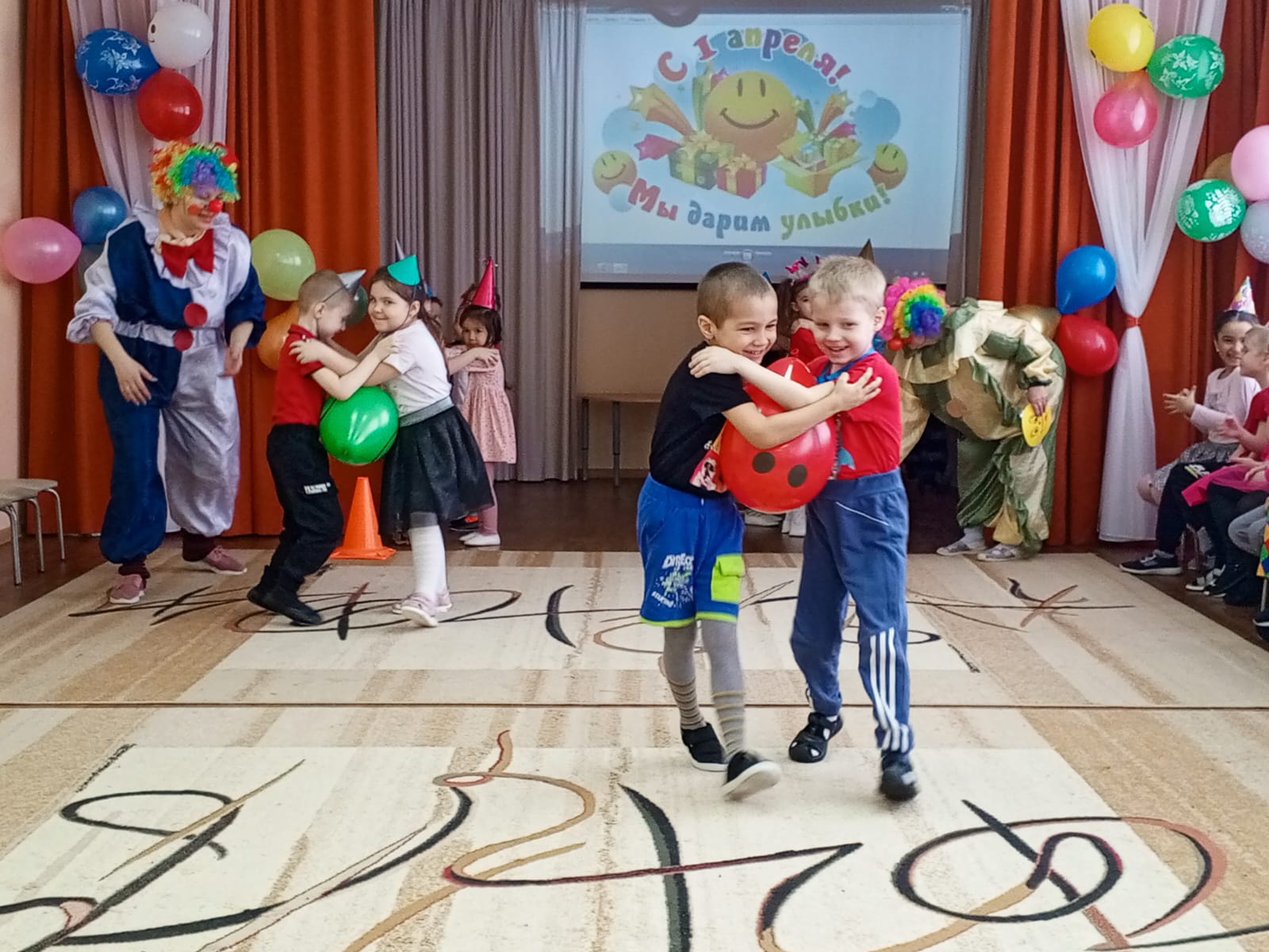 А наших ребятишек пришли повесились сегодня развесёлые клоуны Бим и Бом!