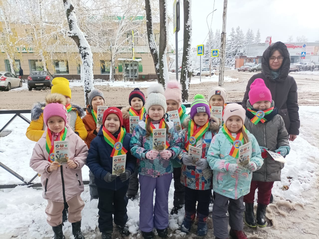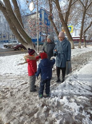 «Көзге каникуллар» профилактик акциясе кысаларында ЮИД отряды әгъзалары балалар бакчасы янындагы җәяүлеләр кичүе янында эшләделәр. Яшь ярдәмчеләр узучы балаларга " Яшь җәяүле белешмәлеге» таратканнар, ә өлкәннәргә үзләренең балаларын көннең кичке караңгы вакытында, яктырткыч элементлар – фликерлар - «фликер - безнең дустыбыз»белешмәлеге белән тәэмин итеп, аларны саклауның мөһимлеге турында искә төшергәннәр.