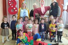 Сегодгня в старшей группе воспитатель Филимонова Елена Анатольевна и музыкальный руководитель Матвеева Лариса Викторовна организовали и провели развлечени “Как Кикимора внука в армию провожала”. На празднике дети с задором исполняли весёлые военные песни и частушки, читали стихи, проявили ловкость, быстроту и смекалку в спортивных военных играх. И конечно же не обошлось без шуточных героев. В гости к детям пришла Кикимора со своим внуком Лешим , которого наши воспитанники обучали всем тонкостям армейской жизни.