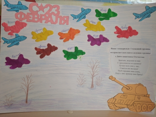 С праздником “23 февраля- Днём защитников Отечества” поздравили сегодня наши воспитанники своих дорогих и любимых пап и дедушек. Помимо праздничной программы, каждая группа приготовила коллажи и стенгазеты с поздравлениями и приятными пожеланиями.