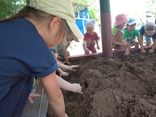 Сегодня день в детском саду был посвящён играм с песком. В гости к детям пришли сказочные герои: Песочная фея и Незнайка. Они зарядили детей отличным настроением и научили играть в увлекательные игры с песком.