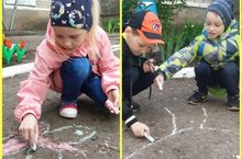 Нашим воспитанникам стало мало листа бумаги, творческие души детей захотели развернуться во… весь асфальт! Вспомнив про цветные мелки, скучно-серые дорожки превратились в холст, на котором детская фантазия не знала границ!