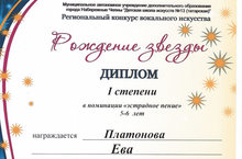 Ева получила диплом 1 степени в номинации "Эстрадное пение".