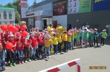 Возле ТЦ "Шифа" был проведён флэшмоб по безопасности дорожного движения, на котором воспитанники нашего детского сада принимали активное участие. После мероприятия воспитанники раздали водителям призывы об осторожности на дорогах и необходимости соблюдать правила дорожного движения.