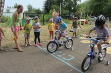 Соревнования юных велосипедистов было организовано сегодня в детском саду. Кроме того, что дети закрепили навыки езды на велосипедах, они повторили правила дорожного движения и правила безопасности.