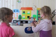 Педагогами ДОУ разработан макет "Безопасный маршрут до детского сада", который получил высокую оценку на муниципальном конкурсе по ПДД. Данный макет - это карта схема нашего микрорайона, на которой дети учатся различать знакомые им объекты: свой дом, детский сад, автовокзал, сбербанк и т.д. Приходя в кабинет по ПДД дети с помощью педагогов учатся прокладывать безопасные маршруты.