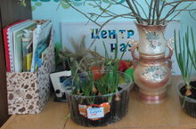 Тәрбиячеләр балаларның тәҗрибә һәм тикшеренү эшчәнлегенә кызыксыну уяту максатыннан, төркемнәрдә балалар белән бергәләшеп "Тәрәзә төбендәге бакчалар"ны оештырганнар.