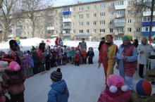 Сегодня в детском саду прошло озорное и весёлое прощание с зимой. Встретили весну, несущую обновление природы и солнечное тепло. Люди испокон веков почитали солнце, дающее жизнь и силы всему живому. В честь солнца напекли блинов и угостили всех присутствующих.