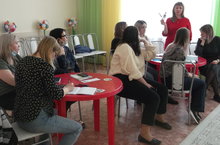 Педагогический совет начала Рузалия Зайнутдинова с отчетом о выполнении решения предыдущего педагогического совета. Далее выступила с презентацией опыта работы «Формирование нравственно-патриотических качеств у дошкольников через национальные подвижные игры» Паникарова Н.Н., инструктор по физ.культуре. Она рассказала о занятиях, построенных на народной игре и играх-эстафетах с использованием регионального компонента: « Продаём горшки», «Хлопушки», «Гори, гори ясно», «Гуси-гуси», «Жмурки», «Липкие пни», «Удочка» «Перелёт птиц» и др. Педагог обратила внимание на то, что не менее важной формой работы в развитии нравственно-патриотических качеств дошкольника являются досуги, развлечения, праздники, такие как: «Поиграйка», «Мама, папа, я – спортивная семья», «Волшебные узоры», «Есть такая профессия – Родину защищать», «Рождество», «День здоровья», «Масленица», «Красная горка», «Весенние проталинки» и т.д. Савочкина Г.З., воспитатель по обучению дошкольников татарскому языку, выступила с темой «Использование УМК в воспитательно-образовательном процессе». Педагог напомнила об использовании учебно-методического комплекта в ООД и режимных моментах и провела с педагогическим коллективом деловую игру «Знатоки татарского языка». Поделив педагогов на 2 команды, она предложила им ряд заданий: поприветствовав друг друга на татарском языке, коллеги поочередно в течение 2 минут отвечали на интересные вопросы, капитаны команд прослушав ведущую, показывали жестами, мимикой услышанное, взяв соответствующую маску, в конкурсе «Игры-Пиктограммы» ведущий показывал на экране задания пиктограммы, а игроки отгадывали. По итогам конкурса все участники были награждены грамотами и медалями «Знатоки татарского языка». Ткаченко В.Р., старший воспитатель подвела итоги тематического изучения «Реализация проектов по татарскому языку в воспитательно-образовательном процессе в ДОУ» и сделала вывод: состояние воспитательно-образовательной работы по обучению детей татарскому языку можно оценить, как достаточный. Уровень развития детей, и профессиональные умения воспитателя, и условия для обучения для дошкольников, и подготовленность педагогических кадров, и планирование, и сотрудничество с родителями - все эти направления требует пристального внимания и углубленной работы всего коллектива. Далее педагоги презентовали игры по татарскому языку, соответствующие их возрастной группе и показали видео организации закрепления пройденного материала в режимных моментах. В заключении педагогического совета Рузалия Зайнутдиновна, заведующий, по итогам конкурса «Лучшее дидактическое пособие по обучению дошкольников татарскому языку» наградила участников грамотами.