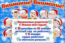 Самый любимый праздник, как взрослых, так и детей, конечно же, Новый год. Атмосфера праздника царила в детском саду всю предновогоднюю неделю, и проведённые утренники окунули всех в сказку. Воспитанники старшей группы, перевоплотившись в различных героев, помогали вернуть подарки, спрятанные Бабой Ягой и Лешим. С появлением Деда Мороза и Снегурочки начался настоящий праздник с песнями и танцами, хороводами вокруг ёлки. После представления дети читали стихи Деду Морозу и Снегурочке, фотографировались с персонажами, получали новогодние подарки.