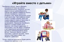 – Во-первых, обратите внимание на организацию пространства – доступность: как расставлена мебель, где лежат игрушки, насколько они в реальном доступе для ребенка. Если вдруг полка или какое-то оборудование оказывается для ребенка недоступным, то он к нему не обратится. Он будет ходить за взрослыми по пятам и ныть, чтобы с ним поиграли. В таком случае, он никогда сам себя не займет. Доступность – это один из критериев качества, который мы используем при оценке дошкольных образовательных учреждений, и это действительно очень важно.