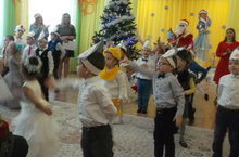 Новый год в нашем детском саду - это самый волшебный и долгожданный праздник –праздник елки, зимы и игр с Дедом Морозом и Снегурочкой, которые уносят ребят в мир фантазии, будят воображение, наполняют сильными эмоциональными впечатлениями! Воспитатели и дети старшей группы, участвовавшие сегодня в новогоднем представлении, проявили себя хорошими артистами, показав всё своё творческое мастерство, артистизм, задор и организаторские способности. Они перевоплотились в разных героев: озорную Бабу-Ягу, веселого Снеговичка, Волка, Лису, трусливого Зайца, милых Пингвинов, неуклюжего Медведя, коварную Лису, Снежную Снегурочку и щедрого Деда Мороза! Дети смогли окунуться в праздничную атмосферу приключений, поучаствовать в интересных играх. С появлением Деда Мороза начался настоящий праздник с песнями и танцами, хороводами вокруг ёлки.