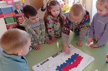 РФ Конституциясе, дәүләт символикасы турында элементар күзаллаулар формалаштыру максатында, 2 кече төркемдә «12 декабрь - Россия Конституциясе көне» дәресе узды. Балалар Россия флагы, Россия флагы һәм флагы төсләре һәм образлары белән таныштылар. Аппликация вакытында триколорның урнашуын Россия флагында беркеттеләр. Соңыннан балалар шигырь тыңладылар: