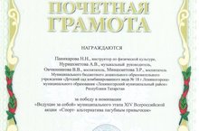 Поздравляем Паникарову Н.Н., инструктора по физической культуре, Нуриахметову А.В., музыкального руководителя, Овчинникову В.В., воспитателя подготовительной к школе группы и Минахметову З.Р., воспитателя 2 младшей группы, с заслуженной победой в номинации «Ведущие за собой» муниципального этапа XIV Всероссийской акции «Спорт- альтернатива пагубным привычкам». Желаем не останавливаться на достигнутом, всегда двигаться вперёд, покорять любые вершины.