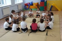 “Сәләмәтлек атналыгы” кысаларында, уртынчылар төреме ата-аналары чакырылган иде. Паникарова Н.Н. физик тәрбия инструкторы,балаларга төсле машиналар булып торырга тәкъдим итте. Юлга чыгар алдыннан машиналар – балалар күнекмәләшү - “техосмотр” үттеләр. Шөгел барышында машиналар күпер буйлап үттеләр ( аяк очында йөрү), киртә аша сикереп үтү, тоннель буйлап узу (дуга аша) биремснәрен үттеләр, “Төсле машиналар” хәрәкәтле уенын уйнадылар. Йомгаклау өлешендә аз хәрәкәтле уен “Үз урыныңны тап” уйнадылар.