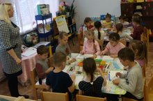Овчинникова В.В., воспитатель подготовительной к школе группы, показала открытое комплексное занятие «Мотивы осени». Воспитанники в ходе занятия сравнивали произведения разных авторов, определяли их характер, замечая образные выражения, эпитеты. Пришли к выводу, что книга - это произведение искусства, поэтому относится к ней следует бережно и аккуратно. Педагог напомнила воспитанникам о деятельности художника-иллюстратора и предложила ребятам побывать в этом образе и создать самим иллюстрацию к книге «Осень».