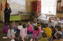 Патриотлык, туган якка мәхәбәт хисе тәрбияләү, уяту мәктәпкә чаклы чордан башлана. Мәктәпкә хәзерлек төркеме балалары, “Дом Детского творчества” га барып, «Мужество – что это такое?» (“Батырлык-нәрсә ул?”)дип аталган презентация карап уздылар. Балалар Татарстан Республикасы геройлары портретларын, аларның батырлыкларын искә төшерделәр.
