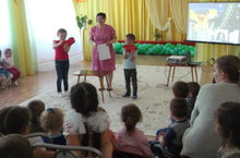 Коршина Ю.Ю., Нуриахметова А.В. бүген «Әкияткә юлдан» исемле ачу кичәсе уздырдылар, анда тѳрле торкем балалары катнаштылар. Әкиятчә балаларны «Теремкәй» исемле әкият геройлары белән очраштырды. Тычкан белән балалар зарядка ясадылар, бака-бакылдык белән «Түмгәктән-түмгәккә дигән уен уйнадылар, Аю белән «Аюныӊ бурасында», Куян-сикерчеккә балалар кишер җыярга булыштылар, Тѳлке белән самомассаж ясадылар. Сәяхәтеьезне «Елмаю» дигән җыр белән тәмамладык.