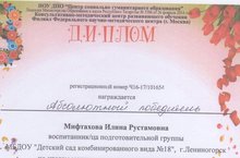 Мәктәпкә хәзерлек төркемендә тәрбияләнүче Алина Т., балаларны татар теленә өйрәтү УМК “Говорим по татарски” буенча муниципаль олимпиадада катнашты. Олимпиадада Алина искиткеч белемен һәм сәләтен күрсәтте. Котлыйбыз!