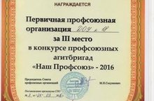 Поздравляем коллектив детского сада - призера муниципального конкурса профсоюзных агитбригад «Наш профсоюз-2016»! Выступление отличалось оригинальностью сценария, артистизмом, яркостью костюмов и выразительностью исполнения агитационной программы участников нашей агитбригады. МОЛОДЦЫ!!!