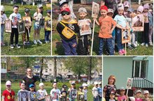 Несмотря на свой еще совсем юный возраст , дошкольники, почувствовали себя сопричастными к истории нашей страны. Воспитанники с гордостью несли на груди символ Победы - георгиевские ленты, а в руках - фотографии родственников, воевавших и отдавших свою жизнь за наше будущее.