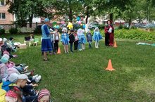 Праздничное мероприятие провели на свежем воздухе. Дети вместе с Петрушкой пели песни, танцевали и с удовольствием участвовали в играх – состязаниях: бой горшков, бег в мешках, перетягивание каната, скачки, бег с ведрами и т.д. Состязались дети всех возрастов, посещающие детский сад. Праздник прошёл в веселой и доброжелательной обстановке. Каждая группа получила подарки и грамоты за участие.