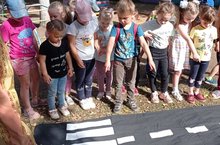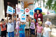 27 августа 2020 года на территории нашего детского сада было проведено мероприятие в форме спортивно-развлекательной игры с элементами викторины для двух возрастных групп «Маша и правила дорожного движения». В ходе мероприятия были использованы самокаты и переносные знаки дорожного движения. Ребята рассказали Маше, что светофор это не просто красивые огоньки, а очень нужный регулировщик дорожного движения. Так же через игру ребята объяснили назначение пешеходного перехода и дорожных знаков. В заключение инспектор по ПДД объяснил необходимость ношения фликеров и помог закрепить их на одежде Маше и детям. Флеш-моб «Колесики» с повторением правил дорожного движения помог закрепить все, что ребята узнали сегодня.