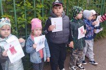 Сегодня, в День памяти и скорби, наши воспитанники решили передать свечу памяти жителям нашего города. Утром мы беседовали о том, какой сегодня день, почему эта дата так важна для нашего народа, вспомнили и о том, сколько жизней унесла та проклятая война. После беседы предложили детям нарисовать свою свечу, в память о всех жертвах войны. А во время прогулки ребята сами раздали свои рисунки прохожим. Такие акции остаются в памяти детей лучше, чем просто беседа или просмотр фильма и несут нравственно-воспитательное значение.