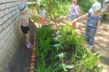 Дети старшего дошкольного возраста (воспитатели: Шайбулатова Е.В., Мамышева Л.В.) охотно ухаживают за цветами, растущими на участке ДОУ.