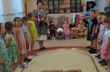 Ежегодно 22 августа в России отмечается День Государственного флага Российской Федерации. В нашем саду прошло мероприятие, посвященное празднованию Дня российского флага, на котором ребята узнали об истории появления Российского флага и о его значимости для нашего государства. Воспитание патриотизма невозможно без формирования знаний традиций своей Родины. Сегодня дети еще раз вспомнили государственную символику, читали патриотические стихи, пословицы о нашей Родине. Детям очень понравились игры «Передай флажок», «Ох, хорошо!», где они показывали иностранной гостье, как надо париться русским березовым веничком. А еще ребята рассказали гостье о других символах России- березке, балалайке, самоваре, матрешке и др.