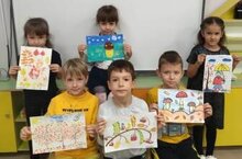 На прогулке ребята второй младшей ( педагог Дёмина Т.К.) и в средней национальной группе (педагог Афандиева Л. М.) рисовали мелом, изображения асоциирующие с этим знаменательным днем.