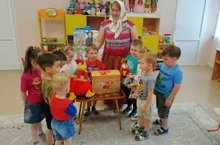 В гости к ребятам пришла бабушка Сказочница с волшебным сундучком сказок. Она рассказала малышам о детстве поэта, о людях, которые окружали его и оказали большое влияние на творчество поэта.