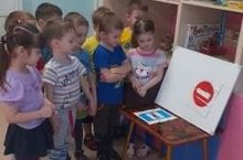 В средней группе проводилось мероприятие "Безопасность на дороге", где дошкольники побеседовали о правилах дорожного движения, поиграли в словесные игры "Рифма", "Выбери ответ", "Вставьте пропущенное слово". Использовали дидактические игры "Зажги светофор" (макет светофора), "Внимание-дорога". Воспитанники с помощью считалки выбрали полицейского регулировщика и вместе с ним отгадывали загадки и картинки с дорожными знаками.