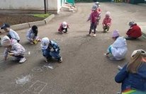 Праздник продолжился рисованием на асфальте цветными мелками. В детских рисунках можно было увидеть природу, друзей, родных и близких людей. Все рисунки были разными, но объедены одной общей темой "Весь шар земной детям!"