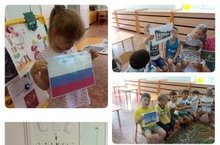 Накануне Дня России в средней группе (воспитатель: Горбачева Н.А.) прошла тематическая беседа, посвященная этому событию. Ребята читали стихи, слушали Гимн России, играли в подвижные игры. Детям было рассказано, почему наш флаг состоит из трех цветов, и что обозначает каждый цвет.