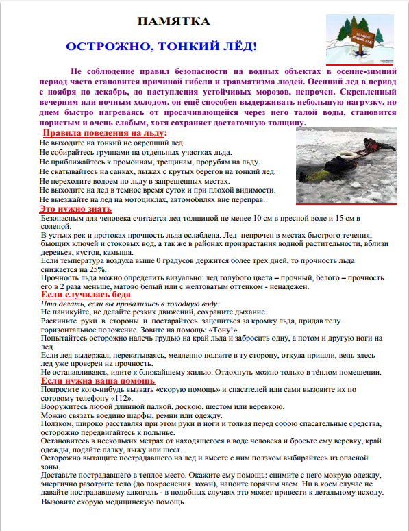 Методические рекомендации по пропаганде правил безопасности людей на воде в осенне-зимний период 07.11.2017