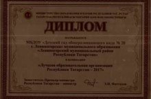На праздновании Дня Учителя в г.Казань МБДОУ "Детский сад № 20" награжден дипломом Министерства Образования и Науки РТ "Лучшая образовательная организация Республики Татарстан - 2017".