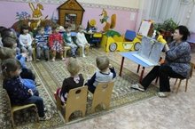 В рамках "Недели русской культуры" в первой младшей группе воспитатели читали детям различные русские народные сказки, играли в народные игры, знакомились с потешками, прибаутками. Дети с удовольствием рассматривали предметы быта старины. Также с помощью настольного кукольного театра была показана сказка "Колобок". Ребята с удовольствием пели вместе с колобком песенку.
