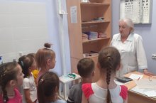 Сегодня воспитанники старшей группы с воспитателем Светланой Валентиновной посетили кабинет старшей медсестры. Тамара Павловна рассказала детям о своей деятельности, показала процедурный кабинет, ответила на интересующие вопросы ребят. Воспитанники поздравили Тамару Павловну с профессиональным праздником и поблагодарили за познавательную экскурсию.