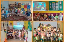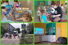 В этот день с детьми возрастных групп был организован мультмарафон, в ходе которого ребята просмотрели обучающие мультфильмы о светофоре, закрепили значения сигналов светофора, правила дорожной безопасности. В творческих мастерских ребята с помощью аппликации создавали изображения светофоров. А ребята второй младшей группы подарили сделанные своими руками светофорчики малышам. Малыши были очень довольны. В течение дня ребята отгадывали загадки, с удовольствием играли в игры с транспортом, моделируя дорожные ситуации.
