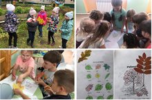 Золотая осень. Деревья пестрят разноцветными осенними листьями. Легким дуновением, ветер срывает листочки с деревьев и кружит их в осеннем вальсе листопада. Ребята на прогулке любуются разноцветными листочками, собирают букеты и определяют, с какого дерева лист.